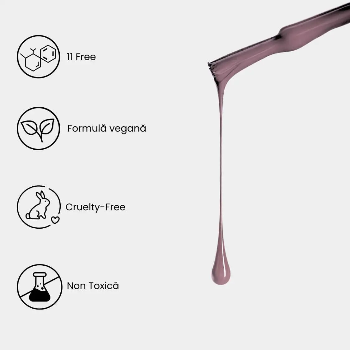 - Siguranță 11-Free: Fără HEMA, TPO și alte 9 ingrediente controversate – formulă curată pentru sănătatea unghiei.