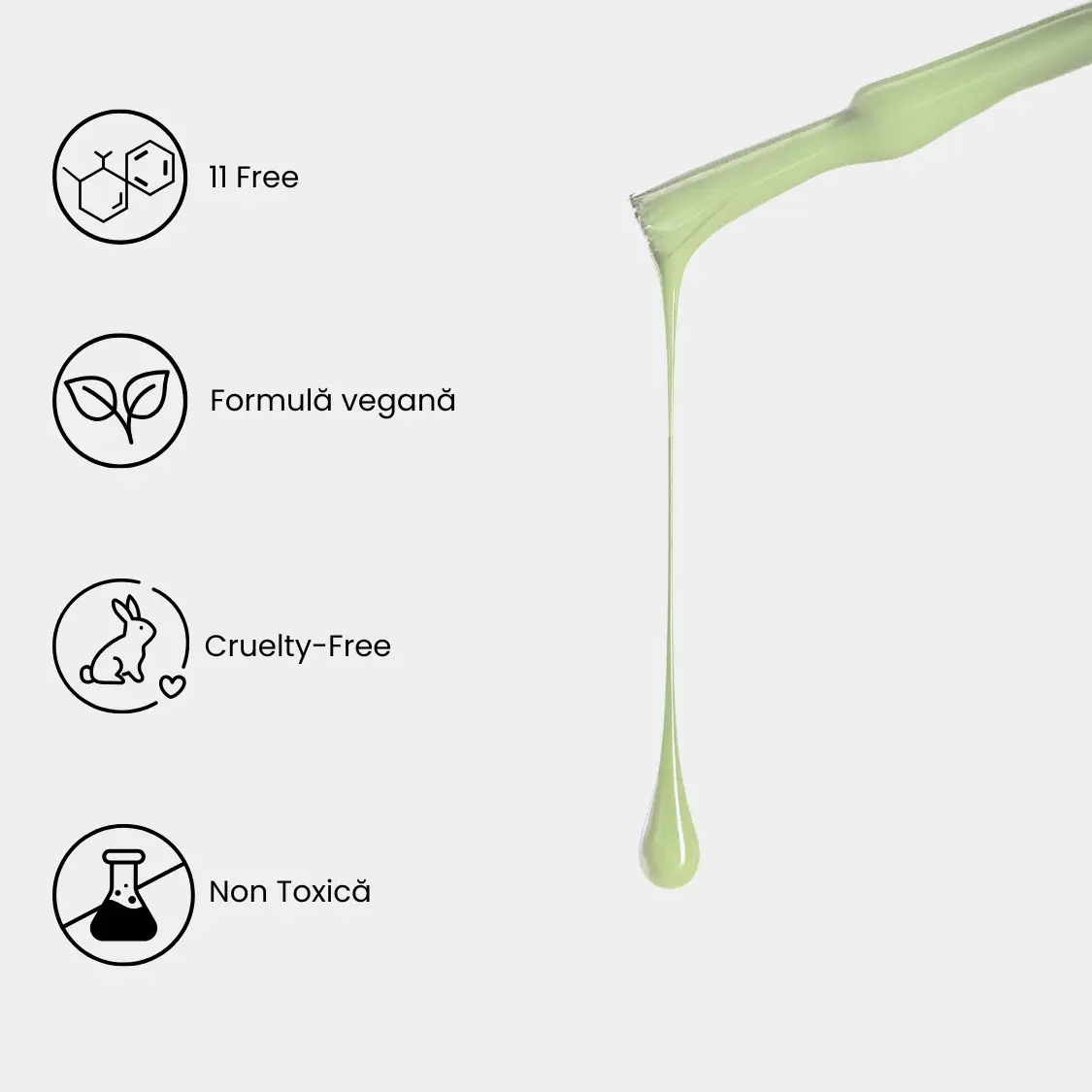 - Siguranță 11-Free: Fără HEMA, TPO și alte 9 ingrediente controversate – formulă curată pentru sănătatea unghiei.