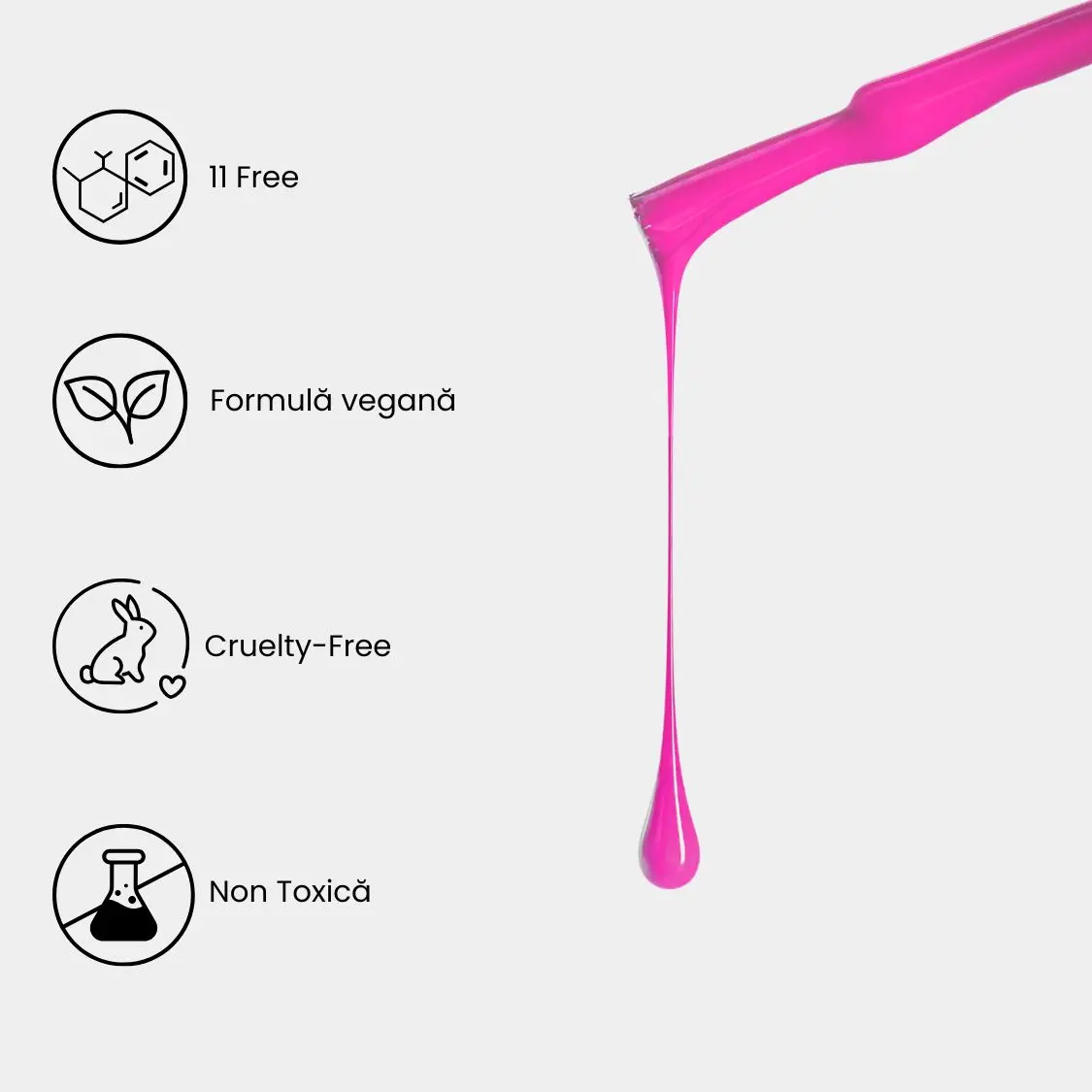 - Siguranță 11-Free: Fără HEMA, TPO și alte 9 ingrediente controversate – formulă curată pentru sănătatea unghiei.