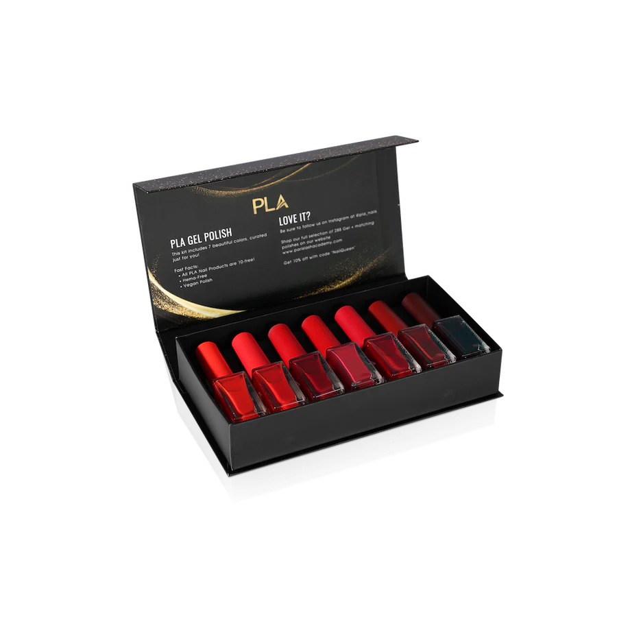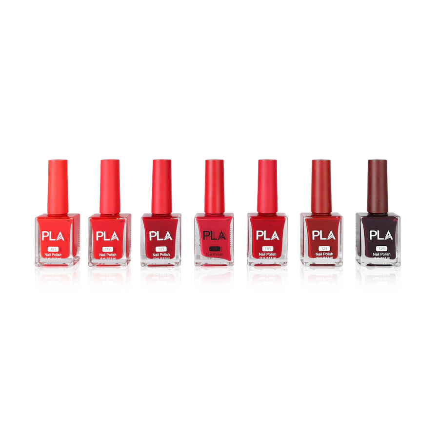 Red by PLA Nails – set de 7 lacuri de unghii roșii