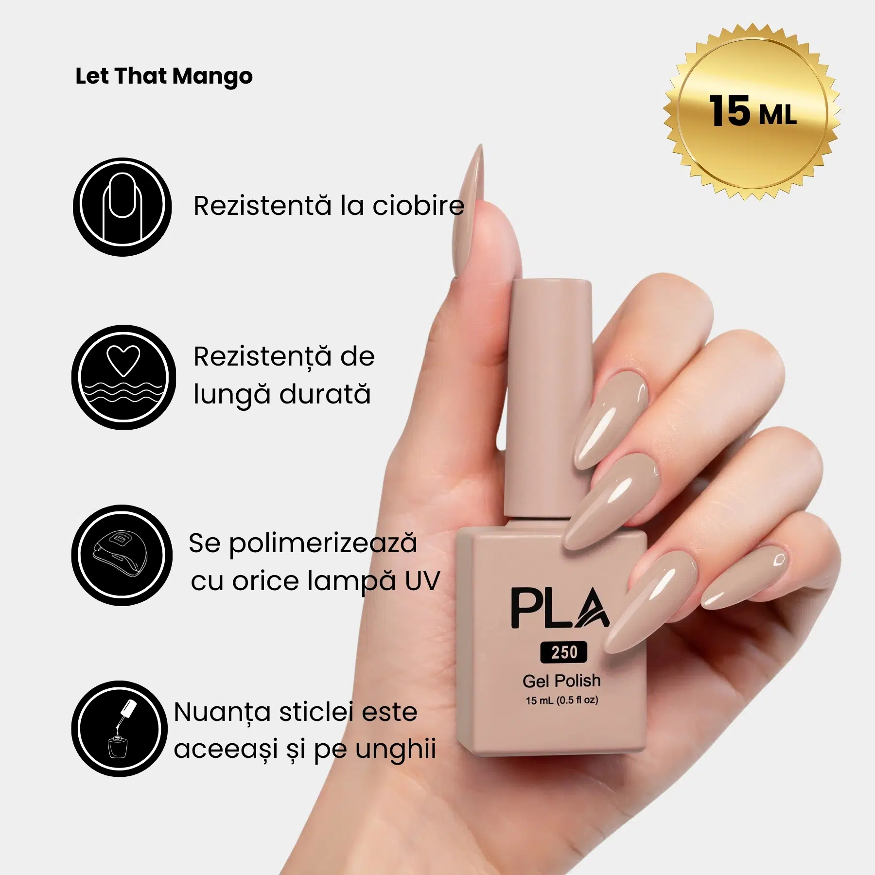 Oja semipermanentă nude bej cald Let That Mango – 250 PLA Nails este clasică și ultra-versatilă cu acoperire perfectă – nuanța care arată bine în orice context. Creată ca pereche perfectă a lacului de unghii cu același nume, această ojă este alegerea ideală când vrei să sigilezi sub lampă și să uiți de grija retușurilor până la urmatoarea programare.
