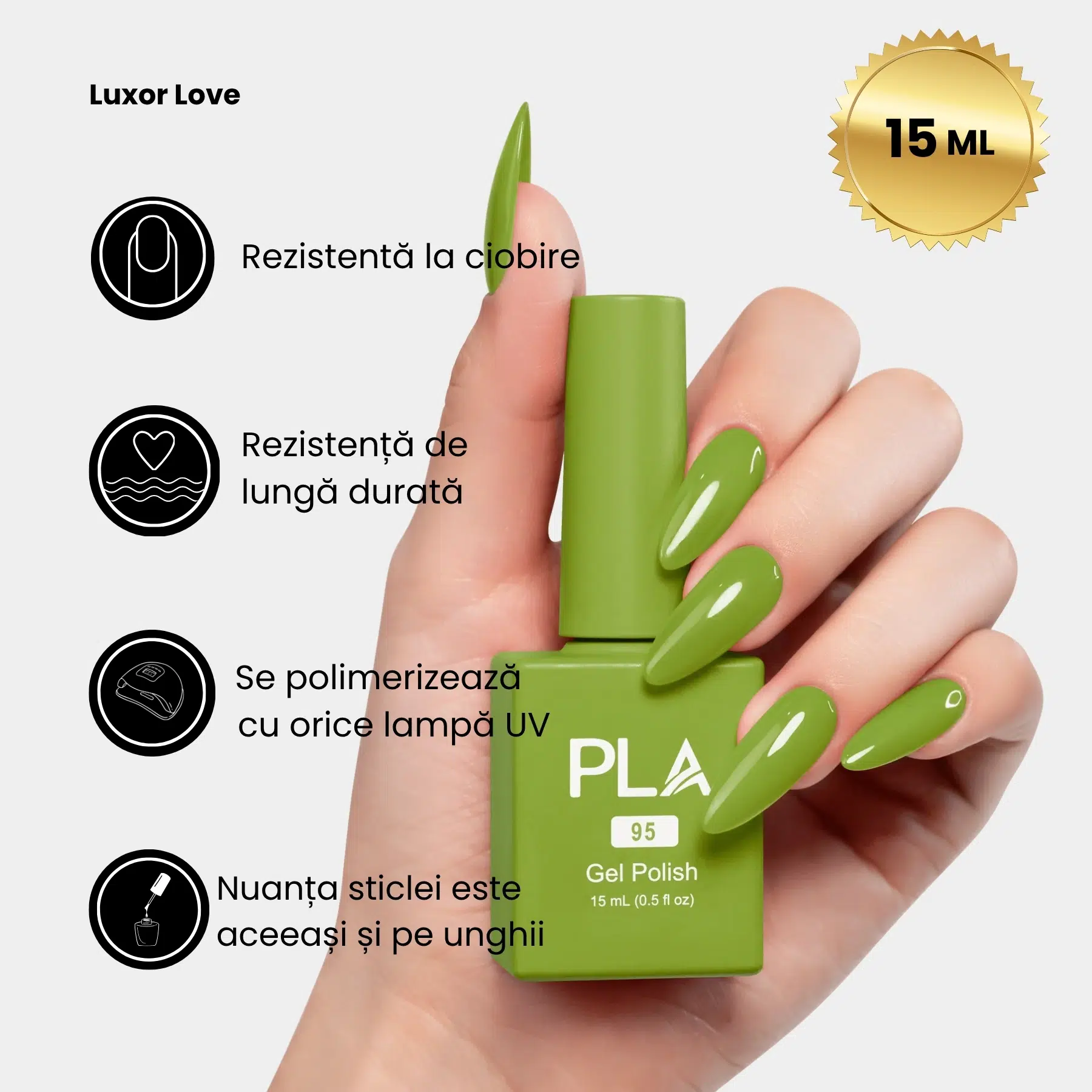 Oja semipermanentă verde lime Luxor Love – 95 PLA Nails este culoarea curajului de a fi diferit, pentru personalități puternice. Creată ca pereche perfectă a lacului de unghii cu același nume, această ojă este alegerea ideală când vrei să sigilezi sub lampă și să uiți de grija retușurilor până la urmatoarea programare.
