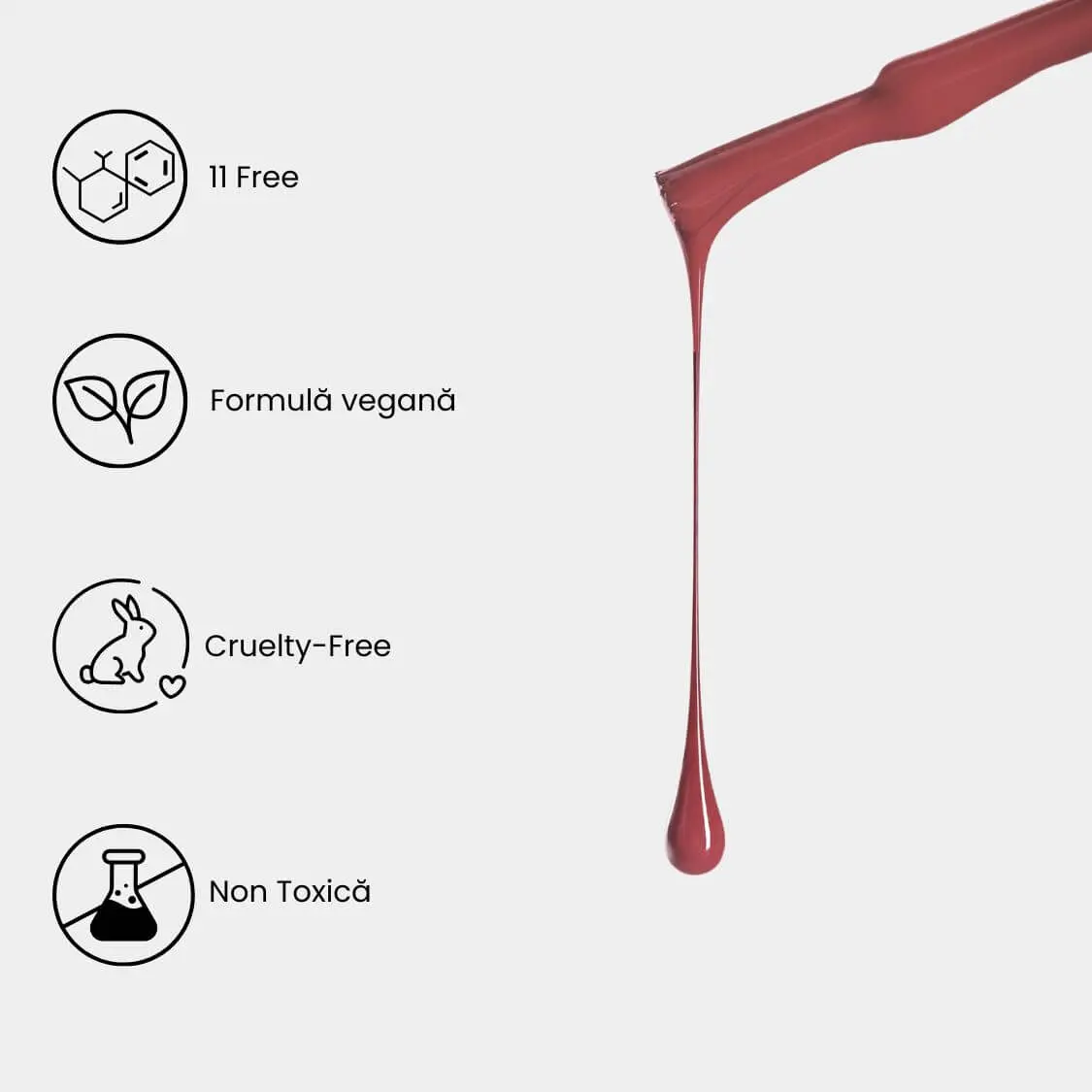- Siguranță 11-Free: Fără HEMA, TPO și alte ingrediente controversate – formulă curată pentru sănătatea unghiei.